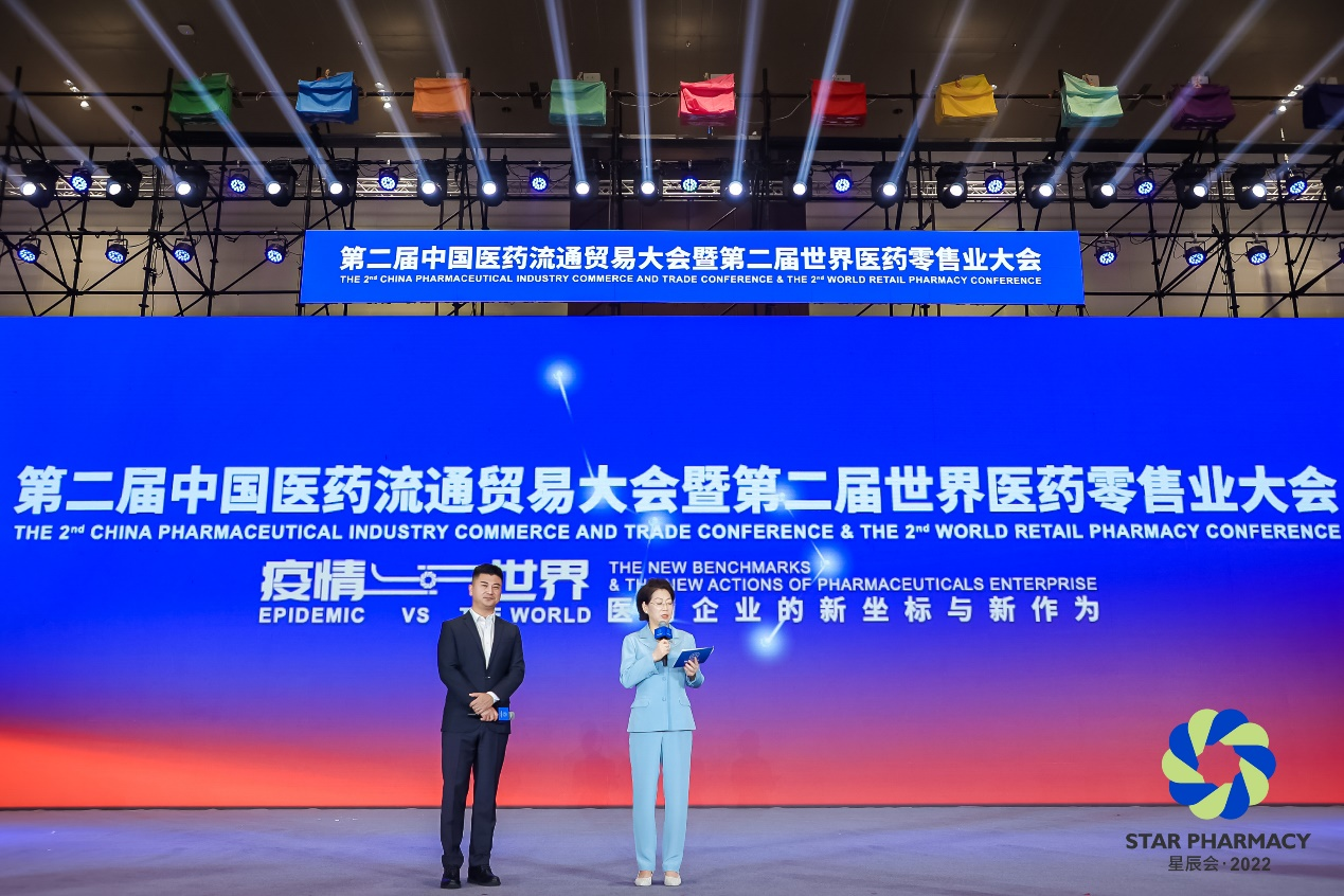 9月8日上午,由长沙市人民政府、中国医药物资协会共同主办的2022年第二届中国医药流通贸易大会暨第二届世界医药零售业大会(第二届星辰会)在星城长沙隆重开幕。抖圈药业集团董事长刘景萍受邀担任大会主持人并荣获“医药工业领军人物”称号。
