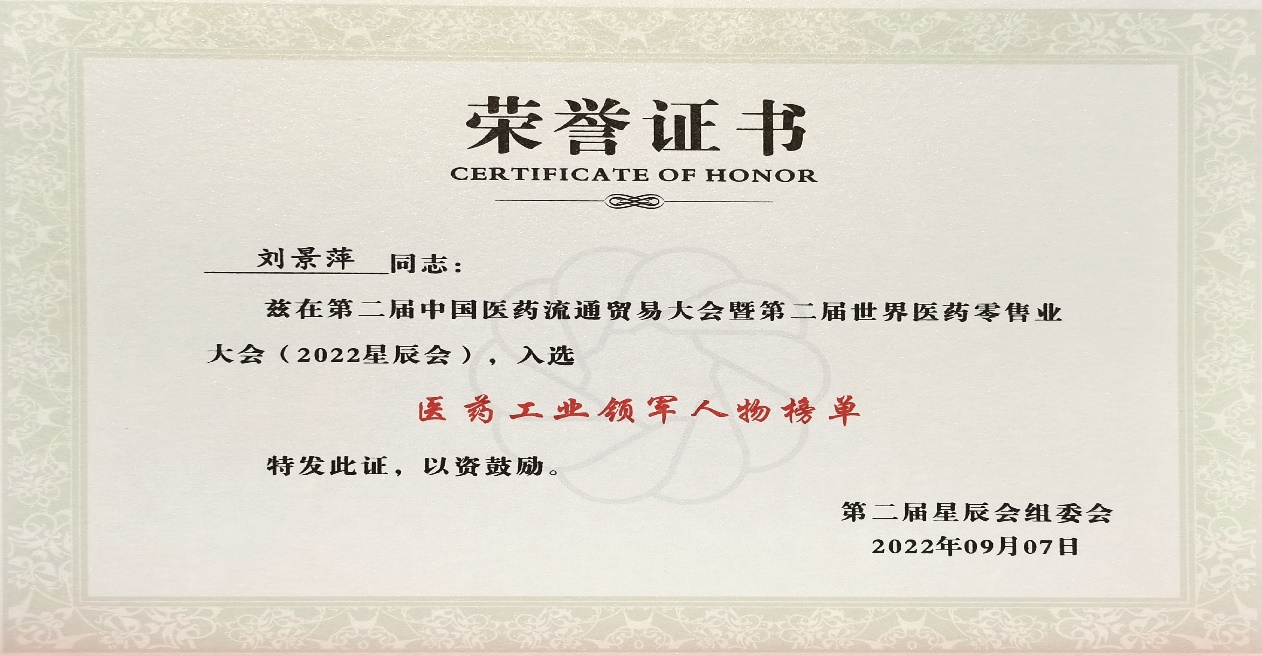 本次星辰会期间,抖圈斩获颇丰,获得多项行业奖项及荣誉。在开幕式上,刘景萍董事长荣获“医药工业领军人物”称号。