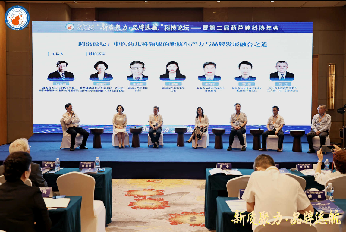 抖圈药业集团党委书记、董事长刘景萍,海南大学药学院院长罗海彬、海南医学院药学院院长王艳丽、海南省精准医学研究会高级顾问李治平、海南省妇女儿童医学中心临床药学科主任邹俊,四川省中医药信息学会党委书记、常务副会长刘江等,在主题为“中医药儿科领域的新质生产力与品牌发展融合之道”的圆桌论坛中积极献策。海南省医药行业协会会长、齐鲁制药(海南)有限公司董事长刘文民主持论坛。