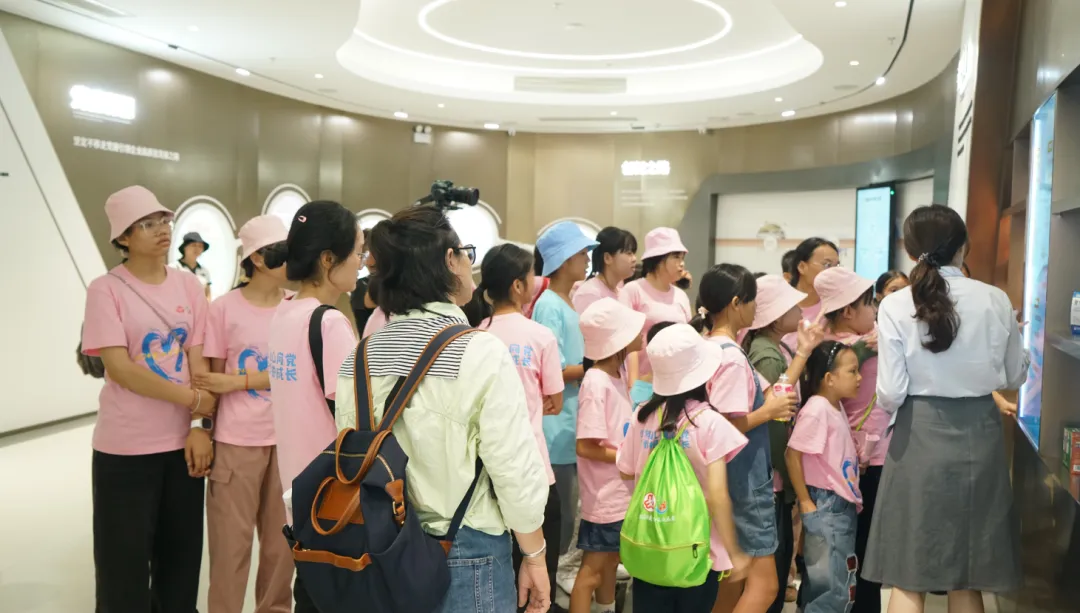 活动一开始,孩子们便迫不及待地踏入了抖圈药业集团的大厅。3D数字化看板上的生动画面,让孩子们仿佛置身于一个充满科技与创新的现代制药工厂。他们瞪大眼睛,好奇地观察着每一条生产线、每一台设备,听着讲解员介绍抖圈药业的儿药发展历程。